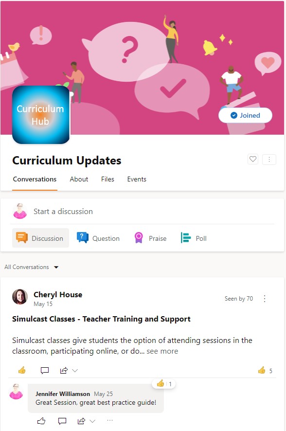 Next, I created a Yammer feeds to provide immediate updates on new course releases and updates. As Yammer is used across the organisation, it was an effective tool for driving interest and traffic to the curriculum sites.